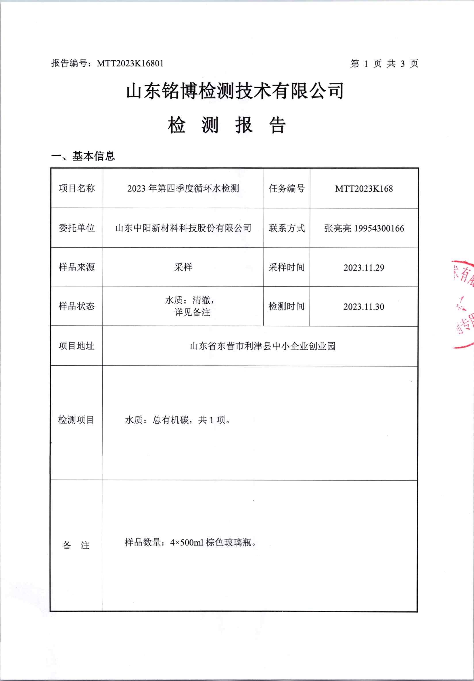 2023年四季度循环水检测